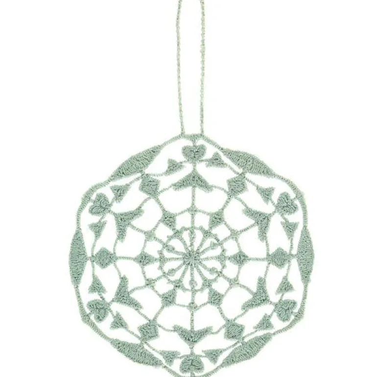 Nydelig, støvet grønn påskeoppheng fra JUNA i 100% polyester. Påskeopphenget måler 6-8 cm og har et flott utskåret mønster laget i et elegant knipling-look, der den leder tankene over på påske i gamle daget. Påskeopphenget er en del av JUNAs Easter-serie, og mønsteret er derfor inspireret av JUNAs påskeduk i samme serie. Bruk påskeopphenget som pynt i vinduet, på en frisk gren eller som bordpynt på påskebordet.