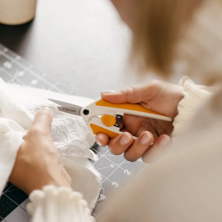 EasyAction sysaks 15 cm oransje/hvit fra Fiskars er ideell for presisjonsarbeid med stoff eller til bruk på kontoret. Saksen er utviklet for å gi nøyaktige kutt selv på detaljerte mønstre og små områder, noe som gjør den til et pålitelig verktøy i enhver kreativ prosess. Det fjærbelastede håndtaket sørger for at bladene åpnes automatisk etter klipping, noe som reduserer belastningen på hånden og gjør saksen komfortabel å bruke over lengre tid. Bladene i rustfritt stål er presisjonsslipte for å opprettholde skarpheten.