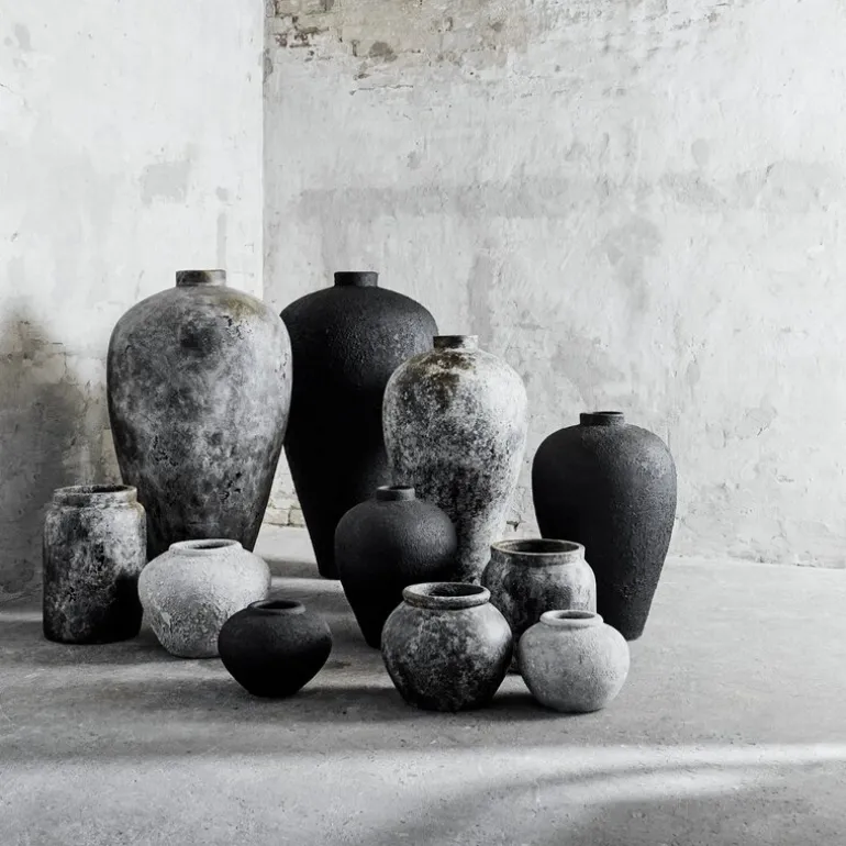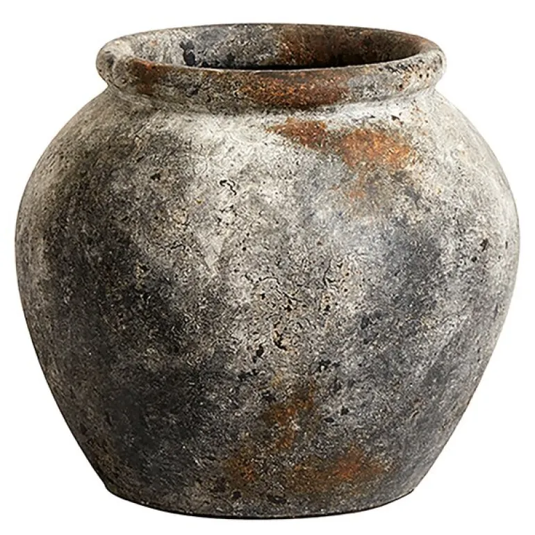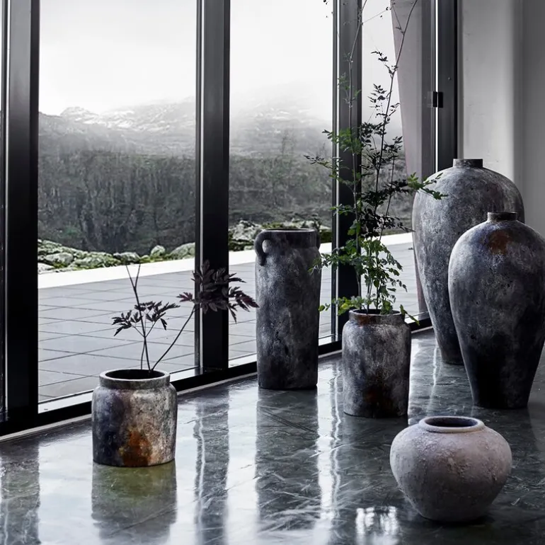 Echo blomsterpotte på 25×30 cm fra Muubs er et eksempel på hvordan rustikk estetikk og nøye håndverk kan skape et produkt som utstråler autentisitet og unikhet. Den grå, rustikke overflaten på denne terrakottakrukkene er resultatet av en spesiell prosess som fremhever krukkens naturlige skjønnhet og karakteristiske uttrykk.