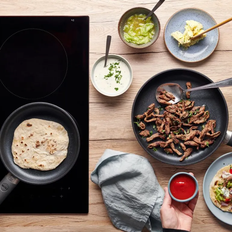 Woll ECO Lite QXR stekepanne 24 cm er laget i støpt aluminium og utstyrt med et fastmontert håndtak som tåler varme opp til 200 °C. Den 8 mm tykke induksjonsbunnen sørger for god varmefordeling og gir stabil temperatur under hele matlagingen.