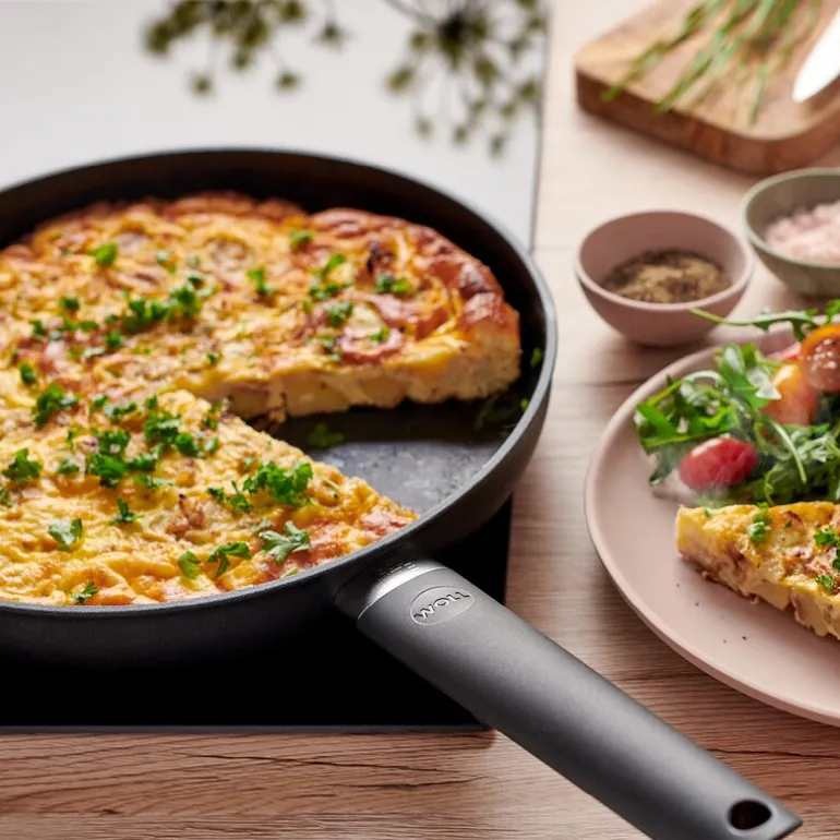Woll ECO Lite QXR stekepanne 28 cm gir god plass og funksjonalitet til daglig matlaging. Den er laget i støpt aluminium med en 8 mm tykk bunn som gir rask og jevn varme, uansett varmekilde. Pannen fungerer optimalt på både induksjon og tradisjonelle platetopper.