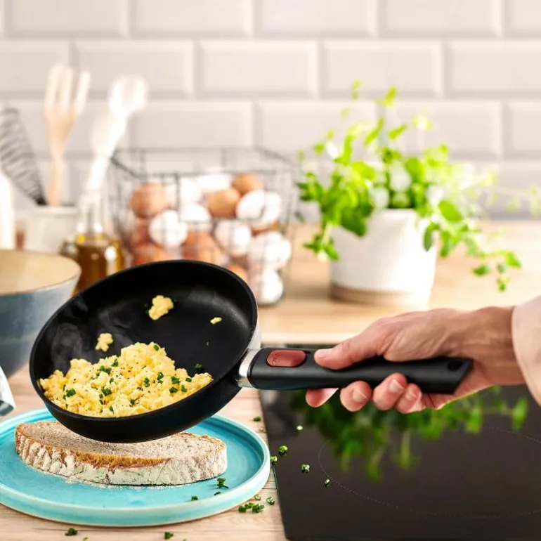 Stekepannen har et avtagbart håndtak, noe som gjør den praktisk og allsidig. Den tåler bruk i ovn, men husk å fjerne håndtaket før du setter pannen inn. Pannen er kompatibel med alle varmekilder, inkludert induksjon, og tåler oppvaskmaskin. For å bevare pannens kvalitet over tid, anbefales det imidlertid å vaske den for hånd med varmt vann og såpe.