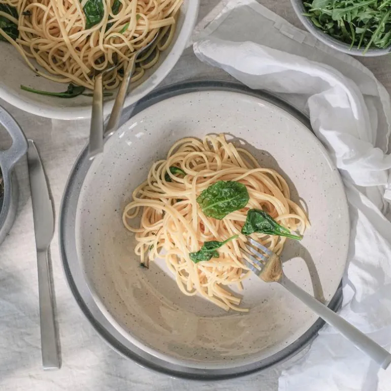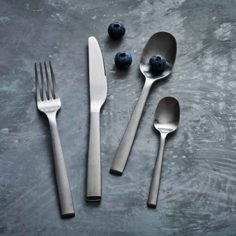 Modern House design Edda er produsert i 18/0 (kniv 13/0) børstet stålkvalitet som er svært motstandsdyktig mot flekker og korrosjon, men selv de fineste legeringer vil svekkes om det utsettes for eksempelvis etsende/syreholdig mat, salt, høyt mineralinnhold i vann, sterke vaske/blekemidler. Stål 18/0 betyr at det består av 18% krom og 0% nikkel. Kan rengjøres i oppvaskmaskin.