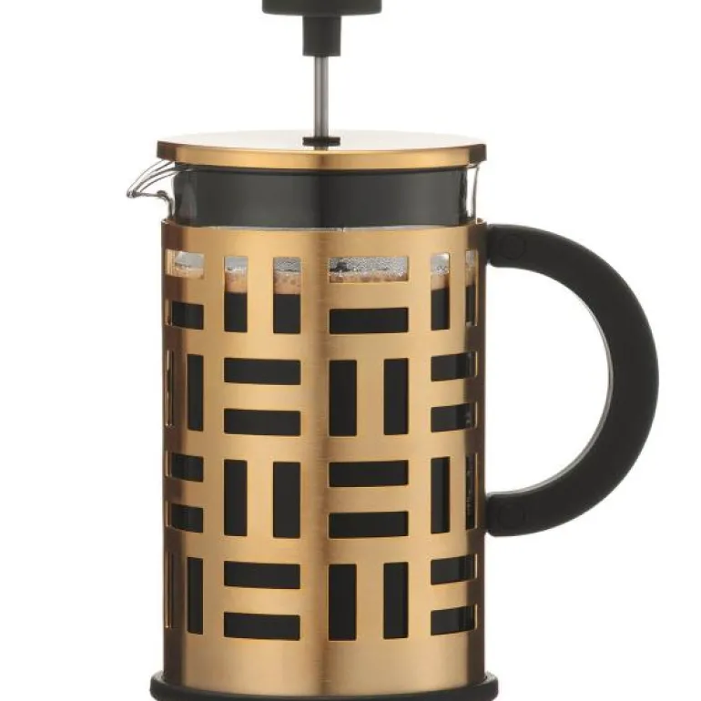 Legg til litt designerstil til salongbordet ditt med EILEEN presskanne. Inspirert av den store irske designeren Eileen Gray.Bodums pressesystem er elsket av kaffeelskere over hele verden for sin enkle måte å presse på og sin rene smak – det forvandler grovmalte bønner til den mest energigivende drikken på få minutter. Alt uten bruk av plastkapsler, sviende papirfiltre og alt annet innen moderne kaffepressing.Ved å kombinere den klassiske smaken av en stempelkanne med et dristig og moderne design, lar EILEEN stempelkanne deg presse og underholde med stil. Det vil også være en flott gave til kaffeelskeren i livet ditt.Nøkkelfunksjoner og fordelerStilig stempelkanne som bringer full smak og aroma ut av presset dittDesignet som en hyllest til den fantastiske irske designeren Eileen GrayMuggen er laget av ulastelig, varmebestandig borosilikatglass, som ikke endrer eller gjenoppretter kaffens naturlige smakMuggen er beskyttet av en rustfri stålramme med en dristig geometrisk designErgonomisk håndtak gir et sikkert og komfortabelt grepEt stempel i rustfritt stål hindrer malte bønner i å slippe ut når kaffen skjenkesMer miljøvennlig enn mange andre kaffepressemetoder – ingen papirfiltre eller plastkapsler nødvendigTilgjengelig i et utvalg sofistikerte detaljerEnkel å bruke og lett å rengjøreKan vaskes i oppvaskmaskin (unntatt kobberdesign)Slik fungerer detStempelkannesystemet er den enkleste måten å presse rik, smakfull kaffe på.Plasser EILEEN på et flatt underlag, hold i håndtaket og trekk stempelet opp og ut av karaffelen.Tilsett en teskje (med topp) eller en Bodum-måleskje grovkvernet kaffe per kopp / 120ml vann.Hell varmt vann i karaffelen (rundt 92-96ºC) med minimum 2,5 cm til toppen og rør med en plast- eller tresleiv.Plasser stempelmodulen på toppen av kannen og snu lokket slik at helletuten lukkes for å holde den varm.La den stå i fire minutter for å presse og dypp deretter stempelet sakte ned. Vri lokket for å åpne helletuten og hell opp den deilige koppen med kaffe.Bruk og vedlikeholdVask i varmt såpevann før første gangs bruk og tørk grundig. Alle deler kan legges i oppvaskmaskinen (unntatt kobberdesignet).Bodums visjon er ren og enkel. Bodum har som mål å bringe høykvalitets kaffe- og teløsninger og husholdningstilbehør til alle, i tråd med dine verdier. Bodum innoverer for å skape flotte design til rimelige priser basert på Bodums veiledende prinsipp om at form følger funksjonalitet, samtidig som Bodum holder øye med bærekraft, miljøansvar og respekt for velferden til sine ansatte, Bodums lokalsamfunn og planeten vår.God design trenger ikke være dyrt, Peter Bodum.