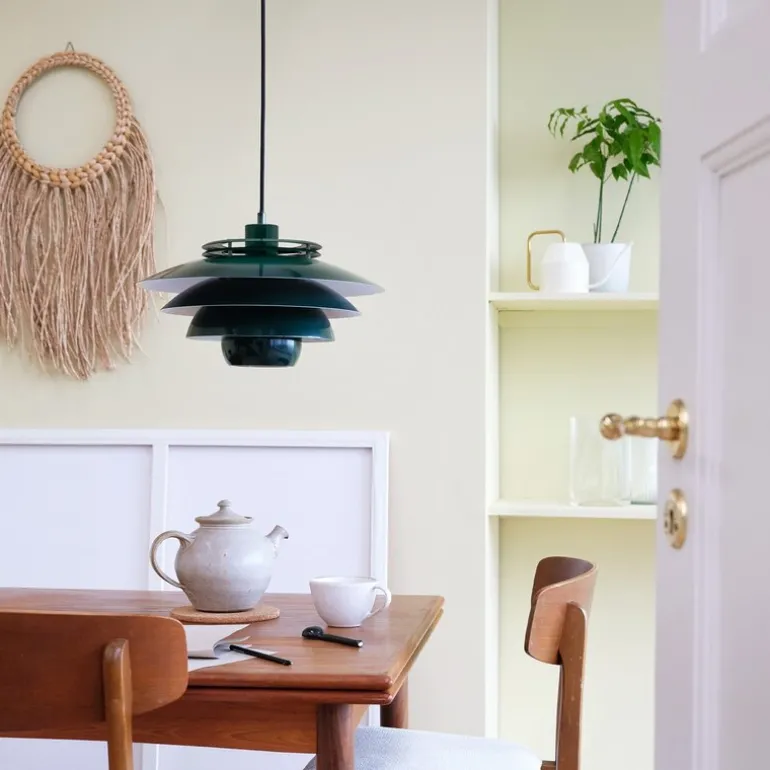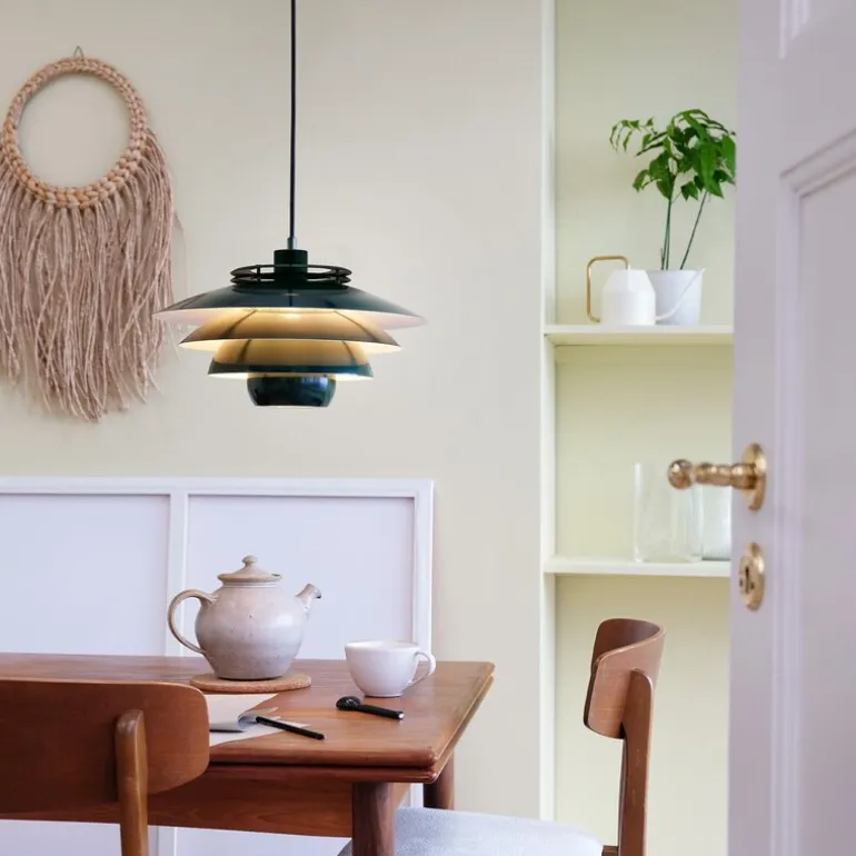 EJKA pendel 20 cm fra Dyberg Larsen er en vakker og funksjonell lampe som passer perfekt i det moderne hjem. Pendelen gir et rent og minimalistisk uttrykk som komplementerer enhver innredningsstil. De fire lagdelte skjermene sørger for en balansert lysfordeling, mens den åpne toppen sprer lyset oppover og ut i rommet, noe som skaper en lys og luftig atmosfære.