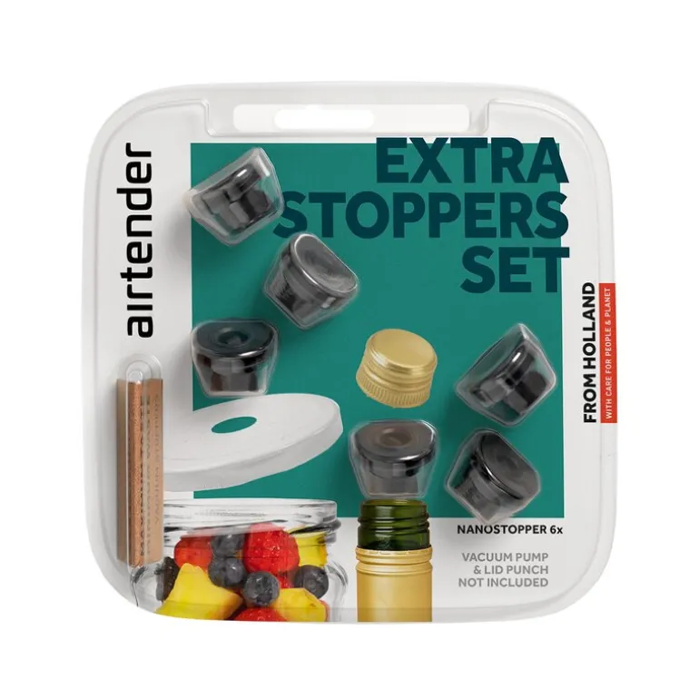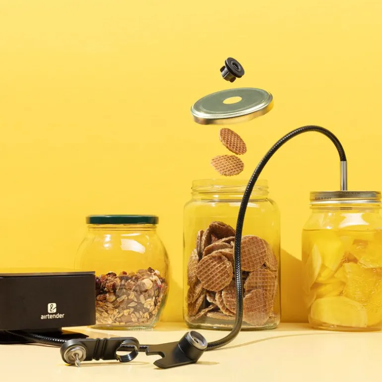 Settet inkluderer alt du trenger for en komplett opplevelse: en elektrisk vakuum- og oksygentilførselspumpe med hullmaker for metallokk, en adapter til matinjeksjon for marinering av kjøtt, og seks vakuumstoppere som sørger for at mat og drikke oppbevares trygt og friskt. Airtender kombinerer innovasjon og praktisk bruk, og gjør det enkelt å redusere avfall samtidig som du tar mat- og drikkeopplevelsen til nye høyder.