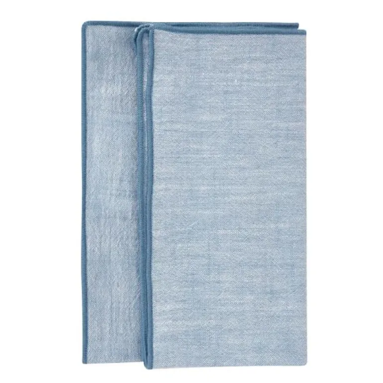 Eline Servietter 45×45 cm, Lys Blå, kommer i 2-pakning. Den dempede blå fargen gjør serviettene egnet for alle typer borddekorasjon. De er laget av 100% bomull, et mykt og lettstelt naturmateriale som du kan vaske i maskin.