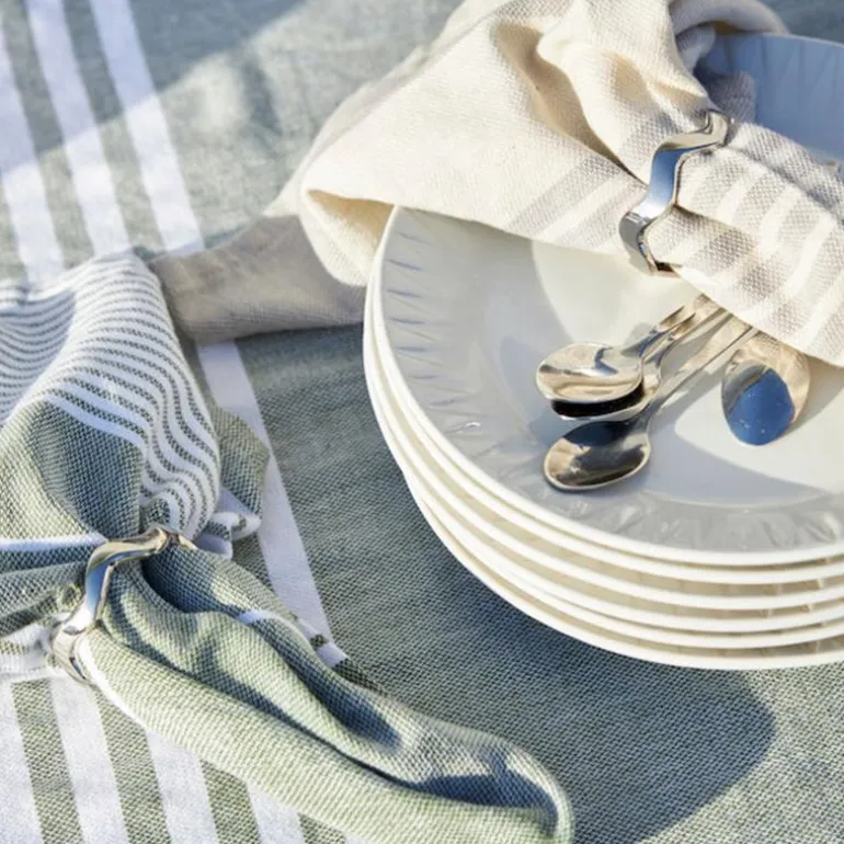 Ella Hamam serviett i tynt vevd økologisk bomull prydet med Sagaforms klassiske og karakteristiske striper. Serviettene finnes i grønn, blå, gul og beige – alle inspirert av naturens fargepalett. Tilgjengelig i 4-pakninger.