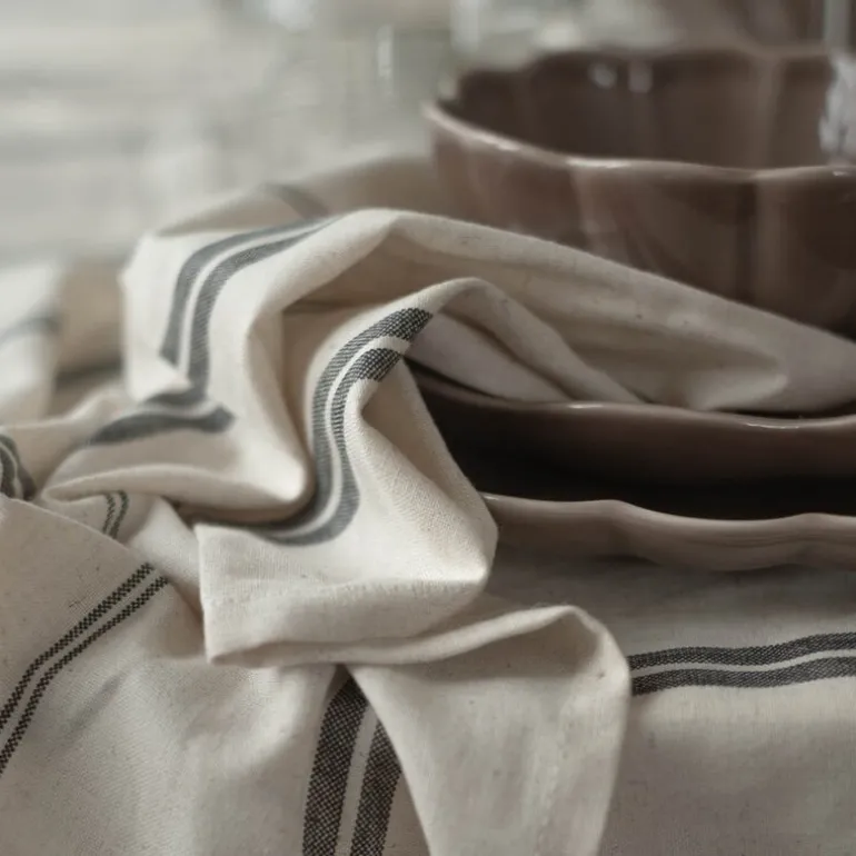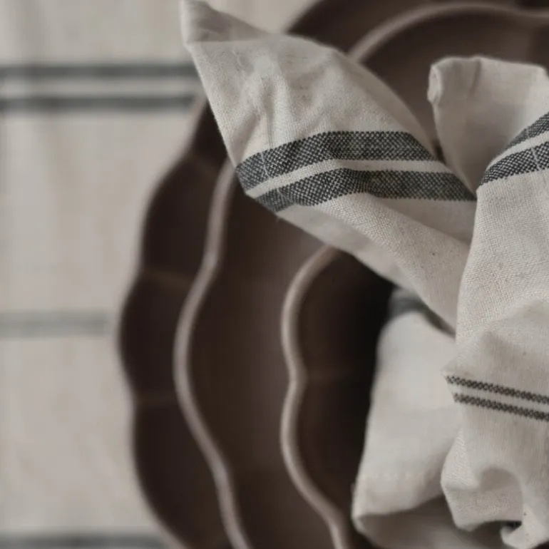 Elsa servietter fra Stiernholm, med målene 45 cm, gir ethvert måltid en følelse av eleganse og stil. Disse serviettene er laget av 70 % myk bomull og 30 % slitesterk lin, og tilbyr en luksuriøs tekstur som kombinerer både funksjonalitet og estetikk. De tidløse svarte stripene mot den naturhvite bakgrunnen gir et klassisk og raffinert uttrykk, som passer perfekt til både hverdagsbruk og mer formelle anledninger.