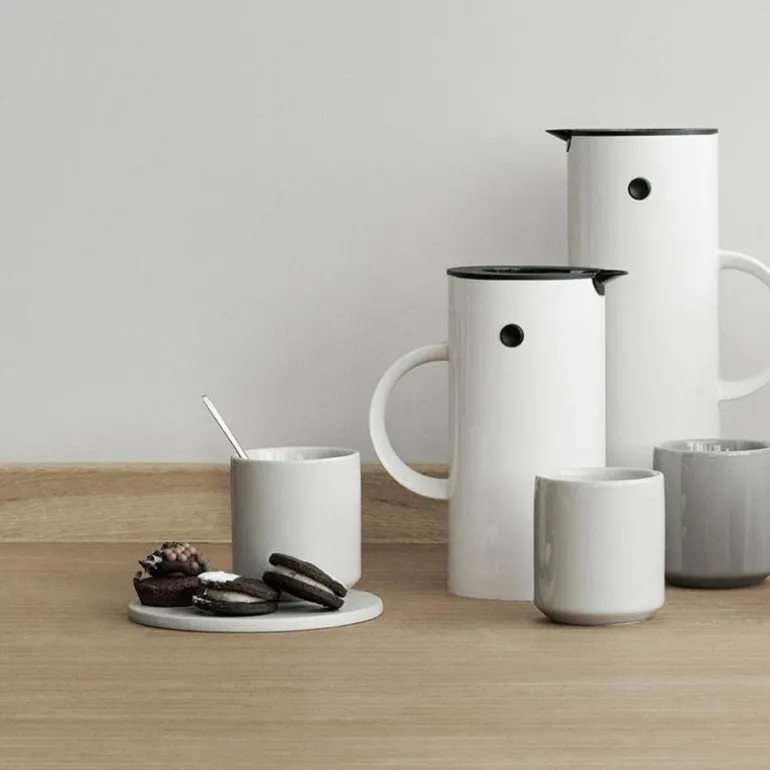 I gjennom årene har EM77 kannene blitt lansert i et bredt spekter av farger, samtidig forblir den klassiske EM77 1 liters termokanne et av Stelton’s mest selgende designs verden rundt. Det patenterte vippelokket i EM77 gjør det mulig å skjenke med én hånd. Hvis kannen skal benyttes ute eller være med på tur, anbefales det å bruke det medfølgende skrulokket.