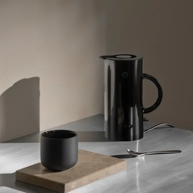 Stelton EM77 vannkoker 0,5L i svart er en kompakt og stilren løsning for steder der plassen er begrenset. Den lille kapasiteten på 500 ml gjør den ideell for hotellrom, mindre kjøkken eller personlige arbeidsområder.