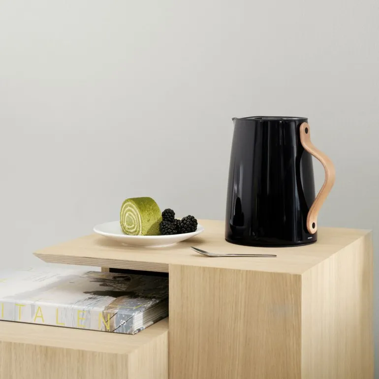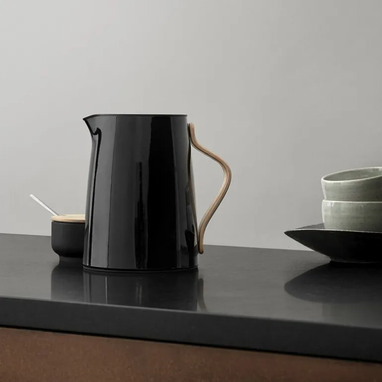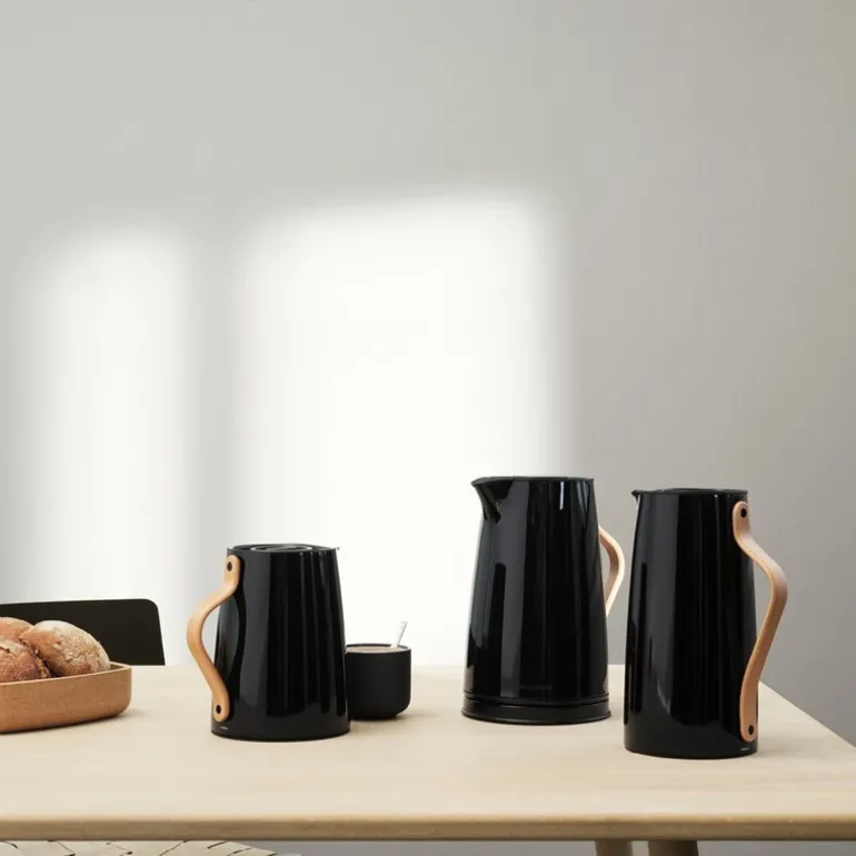 Den prisbelønte Emma-serien fra Stelton har en te-termokanne i lakkert rustfritt stål med en stålinnsats som setter nye standarder for te-brygging. Nå er det en gang for alle mulig å vinke farvel til bitter te. En enkelt vri lukker det innebygde smart-filteret slik at teen slutter å trekke. Enkel å betjene topp/hellefunksjon. Termoinnsats i rustfritt stål.