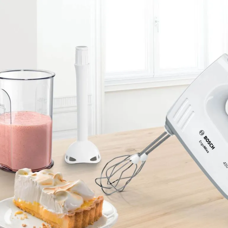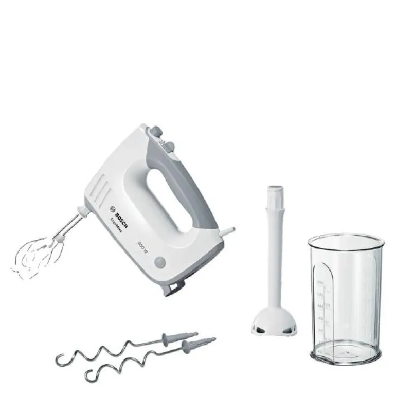 Kraftfull og stilig ErgoMixx håndmikser fra Bosch, perfekt for både nybegynnere og erfarne bakere. Med en motor på 450 watt, gir denne håndmikseren deg utmerkede resultater for alle bake- og matlagingsoppgaver. Den har ergonomisk grep og et gummiert håndtak som gir et komfortabelt og sikkert feste, slik at du kan piske og blande uten anstrengelse.