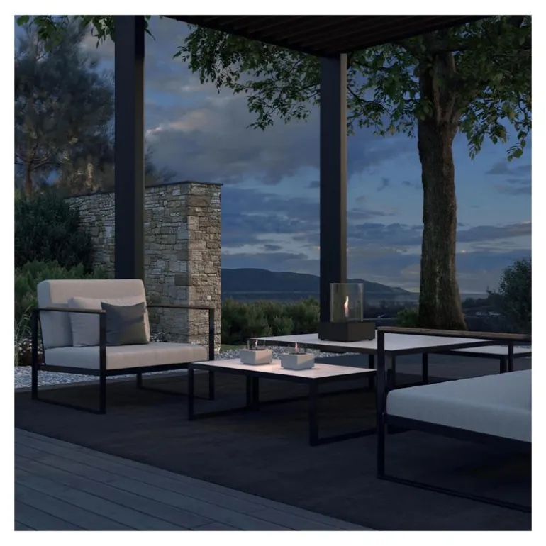 Denne kompakte og elegante bordlykten er designet for å tilføre en hyggelig atmosfære med sine vakre flammer, enten du bruker den innendørs eller ute. Med en brenntid på omtrent 7 timer per fylling kan du nyte flammens rolige spill uten avbrytelser, og lykten avgir ingen os, sot, røyk eller lukt. Med en størrelse på H13 x B12,5 x L12,5 cm og et volum på 0,5 liter passer den perfekt som en subtil men effektfull detalj i ethvert miljø.