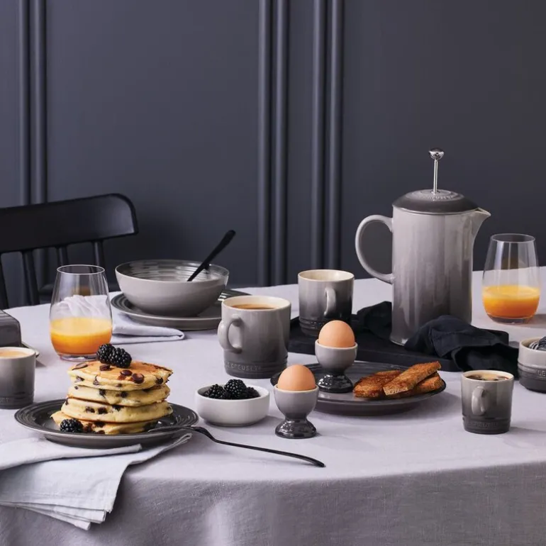 Tilgjengelig i et bredt spekter av livlige farger, bringer disse koppene en ekstra fargeklatt til kjøkkenet ditt. Med sitt elegante treringsdesign, inspirert av Le Creusets ikoniske støpejernsgryter, passer de sømløst inn i enhver Le Creuset-samling.