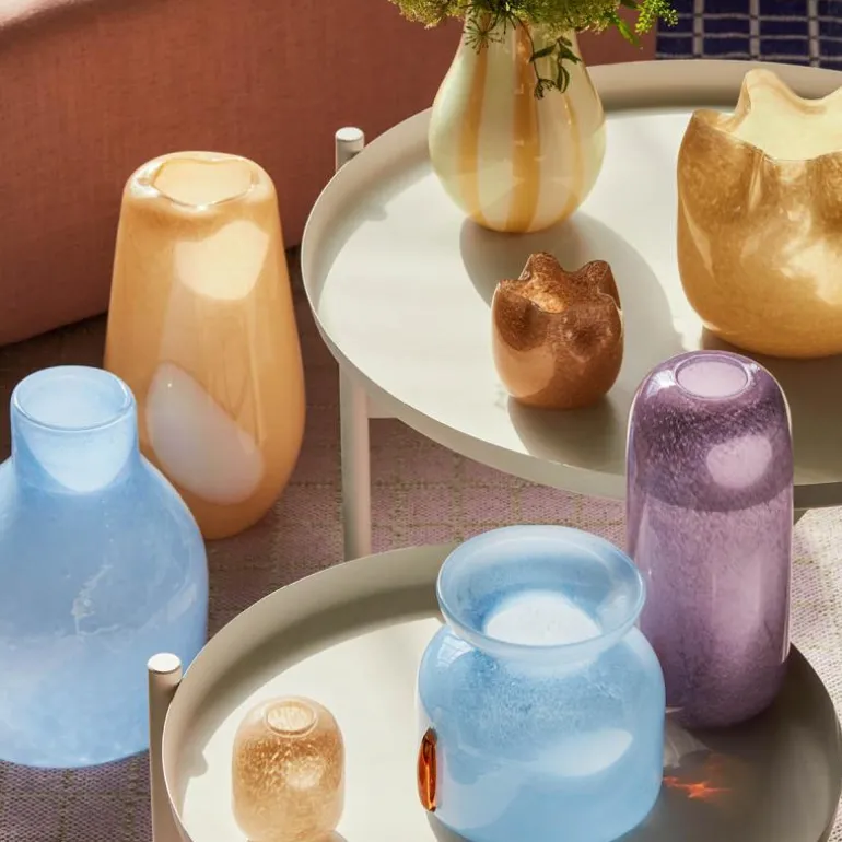 Dekorativ vase Esther 30 cm i fargen mojave desert sand, fra Broste Copenhagen. Vase- og skålserien, Esther, er en flott organisk formet serie i munnblåst glass og de lekre pastellfarger. Fordi de er håndlaget, er det ikke en som er identisk med den annen. Den fine formen gjør at vasen står like både med og uten blomster.Mål:Høyde: 30 cmDiameter: 30 cm