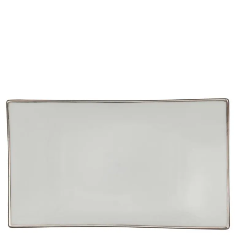 Fat til sausenebb i serviset Extreme Platinum fra Royal Porcelain. Extreme Platinum er et moderne festservise for den som våger litt mer. Serien har et stramt, rent design med spennende former, alt kantet med sølv. Hvem sa at tallerkenen må være rund? De hvite tallerkenene kan fint kombineres med delene som heter Extreme Platinum Paris. Disse er dekorert med et lyst, delikat barokkmønster. Eller hva med å blande produkter fra Royal Porcelains Platinum-serie med Extreme Platinum?Serien er produsert av Royal Porcelain, en av Norges største merkevarer innen serviser. Extreme Platinum er laget av benporselen, som er den aller fineste type porselen. Serien er egnet for oppvaskmaskin. Extreme Platinum får du kun hos Tilbords. Extreme Platinum er et komplett festservise, som inneholder alt du trenger til den fine anledningen. Det enkle, tidløse designet gjør at serviset er like aktuell til alle årstider og kan kombineres med bordpynt i dine favorittfarger. Serien inneholder tallerkener i ulike størrelser – til forrett, hovedrett og dessert – serveringsfat i flere størrelser, suppeterrin, sausenebb og salatbolle. I tillegg finner du selvsagt et komplett kaffeservise.