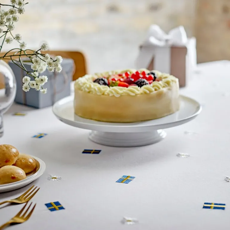 Festlig duk fra Södahl måler 140 x 270 cm og er laget av 100 % bomull. Den hvite fargen gir borddekkingen et klassisk og rent uttrykk, og passer like godt til hverdagsmiddager som til festlige anledninger.