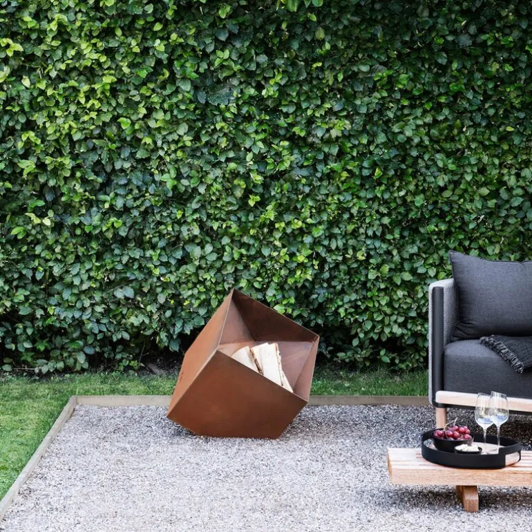 Eva Solo FireCube ildsted er et skulpturelt og rustikt ildsted i corten-stål til hagen eller terrassen. Kuben kan vinkles på to måter, oppreist eller skrått. Det gir den et unikt uttrykk, og samtidig praktisk ly for vinden når det er behov for det. Med en størrelse på 45×45 cm er dette ildstedet både dekorativt og funksjonelt.