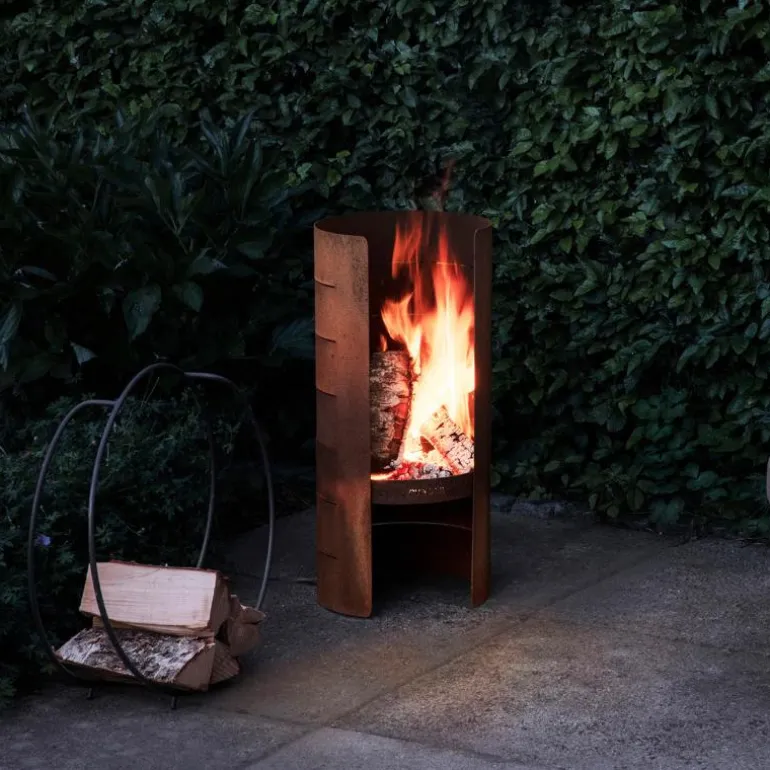 Den høye og smale designen gjør det enkelt å plassere, enten på terrassen eller i hagen. En integrert avskjerming beskytter flammene mot vinden, slik at bålet brenner rolig og stabilt. Perfekt for lange kvelder utendørs hvor du kan grille pinnebrød, pølser eller marshmallows over åpen ild.