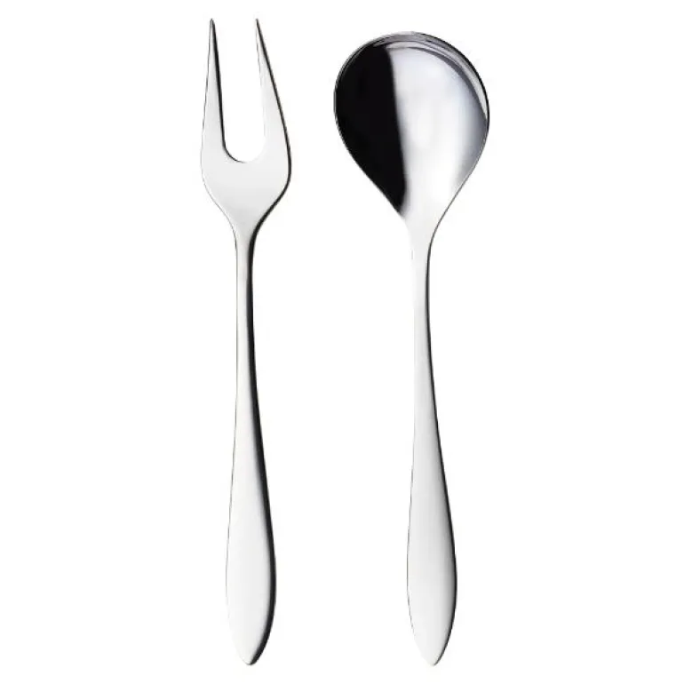 Serveringssett 2 deler fra den myke og minimalistiske Fjord-serien fra Hardanger Bestikk. Bestikket har rene, elegante linjer som er typisk for den skandinaviske minimalismen. Serveringsskjeen og serveringsgaffelen har gripevennlig håndtak, god dybde og komplementerer hverandre for sømløs servering. Stålet som er av 18/10 rustfritt stål tåler oppvaskmaskin, og produktet har livstidsgaranti. Serveringsettet leveres i gaveeske og inneholder;