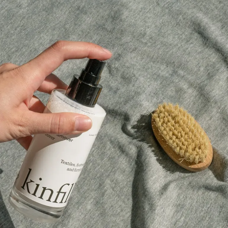 Flekkfjerner 150 ml vetiver fra Kinfill. Laget med planetvennlige ingredienser, fjerner den skånsomme skumløsningen til Kinfills flekkfjerner fjerner effektivt smuss og flekker fra klær, sko og møbler, og forlenger deres levetid.