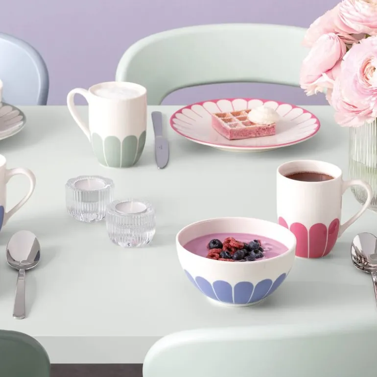 Fleur cassis rosa krus 29 cl i porselen fra Villeroy & Boch bringer en energisk og stilfull følelse til frokostbordet. Det moderne blomstermønsteret og den friske fargen gjør dette kruset til en perfekt start på dagen.
