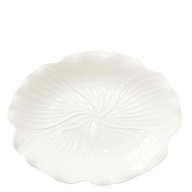 Flora serveringsfat 28×22 cm hvit fra Stiernholm er en elegant tallerken laget av steintøy. Fatet har en tekstur som gir den et mykt og livlig utseende. Teksturen er skapt gjennom en spesiell glasurteknikk som gir platen en tredimensjonal effekt. Flora er en serie servise som består av en lang rekke deler. I tillegg til tallerkener er det også fat, skåler, lysestaker og serviettringer. Serien finnes i flere farger, slik at du kan skape en personlig og unik borddekking. Stiernholm – vakker hverdag, stilfull fest.