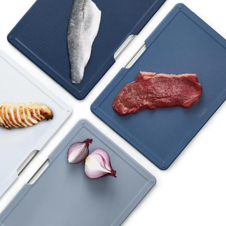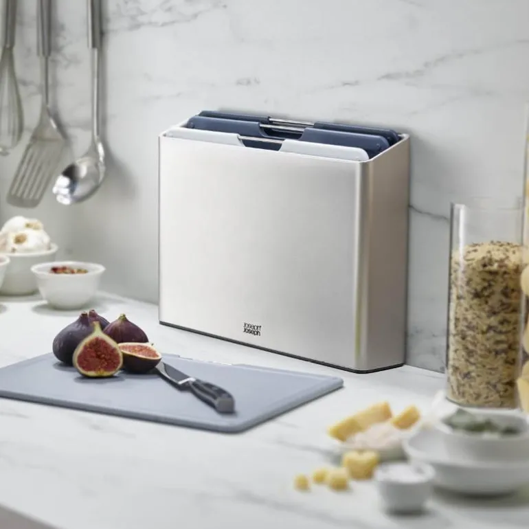 Siden Joseph Joseph ble etablert i 2003, har de lansert mer enn 1000 produkter som gjør livet på kjøkkenet enklere. Dette fargekodede skjærebrettsettet er ett av dem – et produkt av høy kvalitet som hjelper deg å holde matlagingen både trygg og hygienisk.