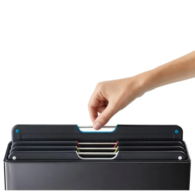 Bestem hvilken farge du vil bruke til hvilken type råvare – rå fisk, rått kjøtt, grønnsaker og ferdiglaget mat. Det gir ekstra god hygiene under matlagingen. Etter jobben er gjort, vasker du brettene i oppvaskmaskinen – eller for hånd – og setter dem pent og pyntelig tilbake i beholderen. Luft mellom brettene sørger for at skjærebrettene tørker, hvis de fortsatt er litt fuktige etter oppvasken.