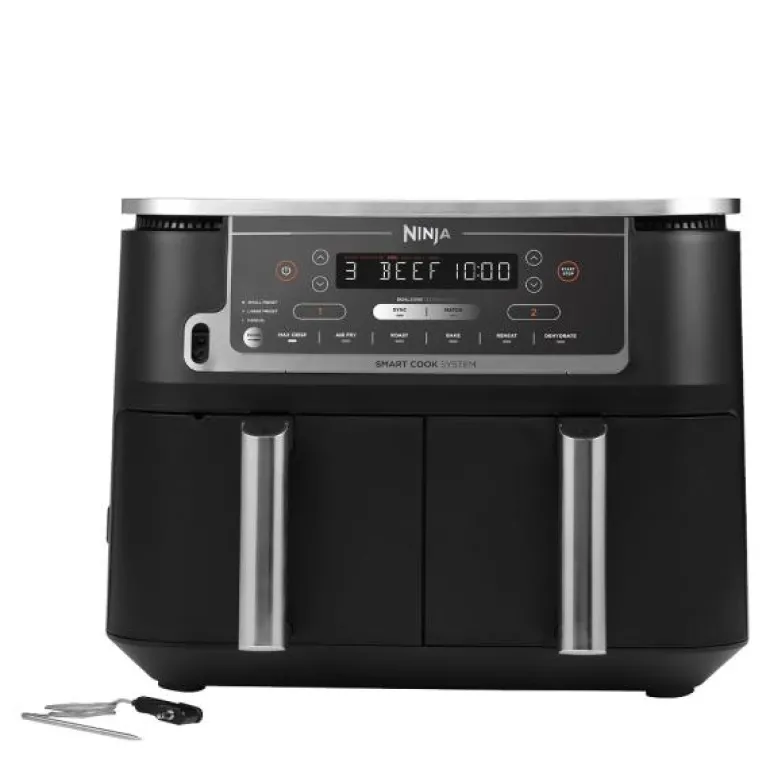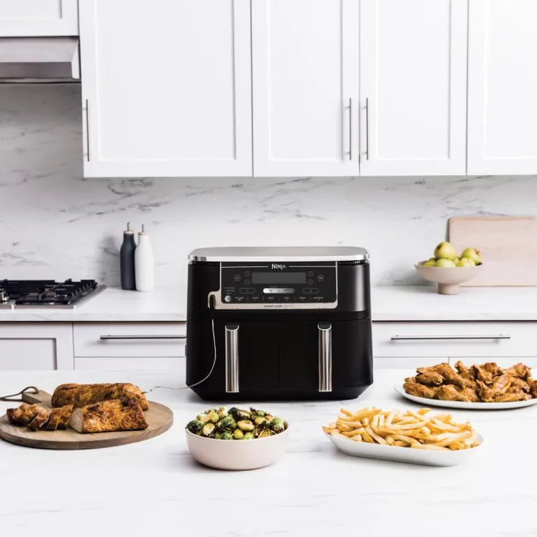 Foodi max dual zone airfryer 9,5L 2470W, fra Ninja. Få måltidene til å nå nye høyder med AF451EU airfryeren, som kombinerer stor kapasitet med avansert funksjonalitet. Denne oppgraderte modellen er utstyrt med Smart Cook System, som gjør matlagingen til en lek – bare sett inn termometeret, så steker den til perfeksjon.