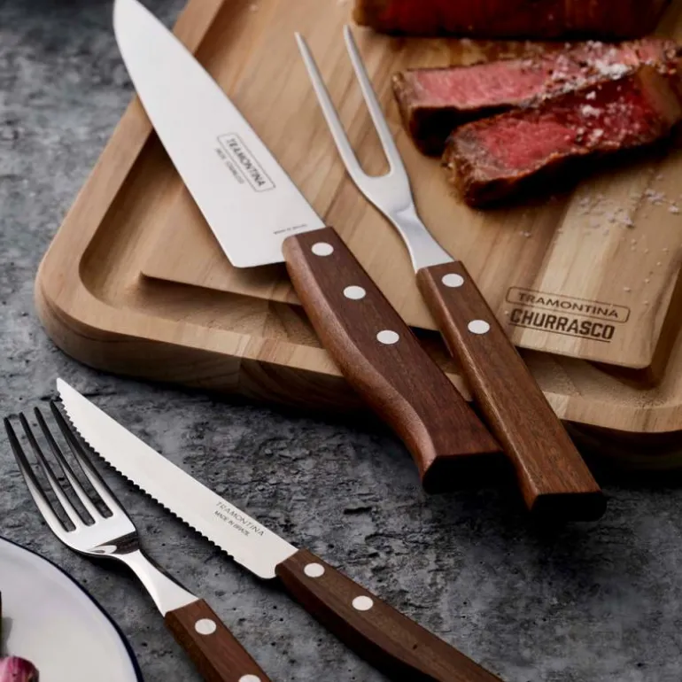 Lekker forskjærgaffel fra Tramontina med et tidløst og ergonomisk design.Polywood-serien har blader i rustfritt stål, form og tykkelse sikrer holdbarhet samtidig som de forhindrer deformasjoner. Den termiske behandlingen gir holdbarhet til bladkanten, og det behandlede polywoodhåndtaket festet med aluminiumsnagler er behagelig å bruke. Med en garanti på fem år forblir de motstandsdyktige mot slag og høye temperaturer, og kan rengjøres i oppvaskmaskinen.