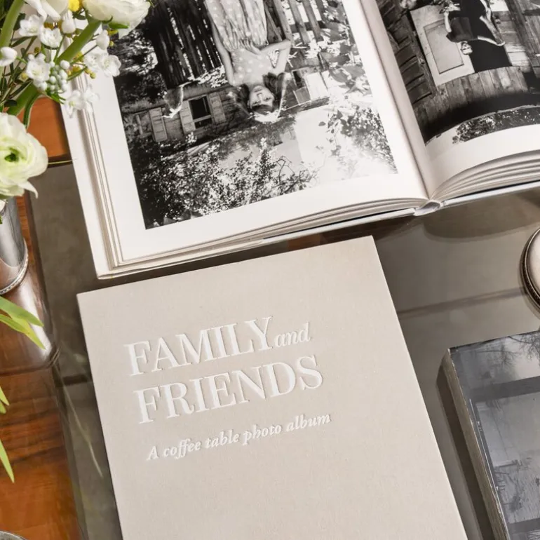 Gi minnene dine et elegant hjem med vårt Family and Friends Coffee Table Photo Album. Dette lysegrå albumet, med sitt delikate stoffomslag og hvit tekst, er både en vakker interiørdetalj og en praktisk måte å samle bilder av familie og venner på.