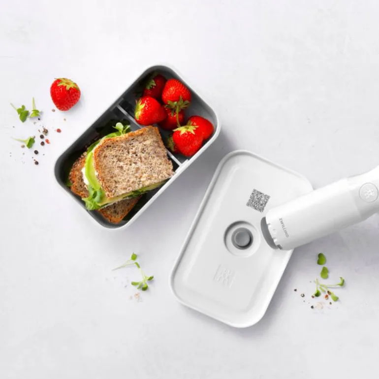Oppdag fordelene med Fresh & Save vakuum bokser fra Zwilling! Med disse innovative boksene kan du oppbevare maten din opptil 5 ganger lenger sammenlignet med ikke-vakuumpakket mat. Den unike vakuumteknologien sikrer at smaken, næringsstoffene og kvaliteten bevares lenger, samtidig som det reduserer matsvinnet ditt.