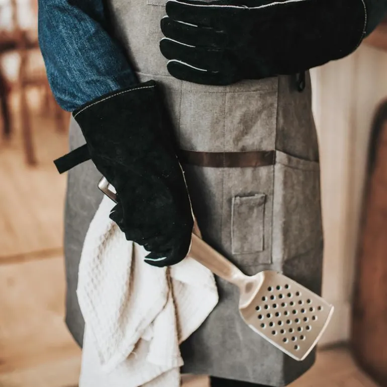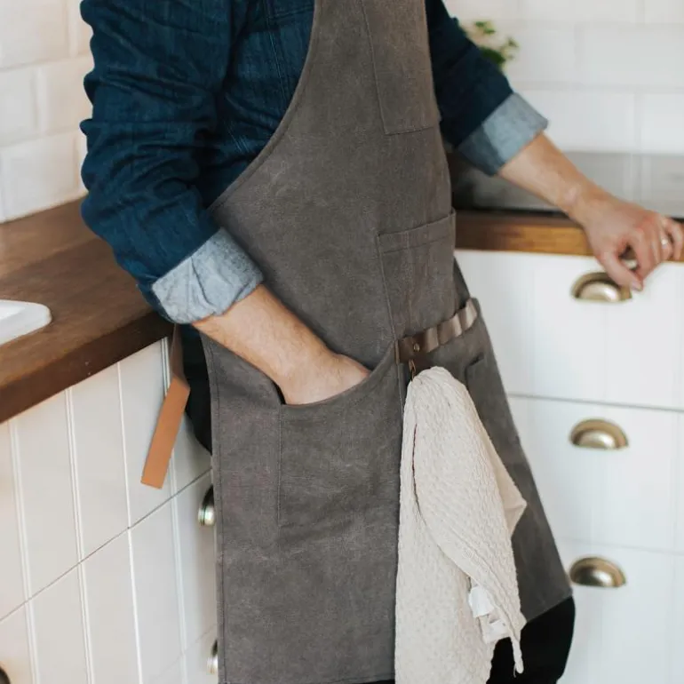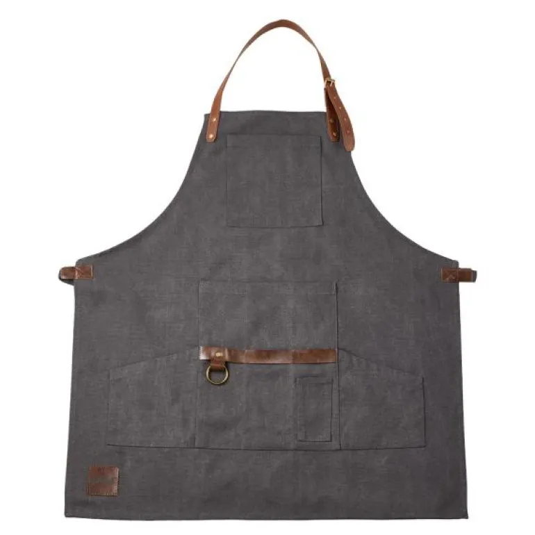 Hold deg fri for fettflekker på klærne dine på kjøkkenet med Freya forkle i grått lerret. Med syv praktiske lommer i PU-skinn og dimensjoner på 68×74 cm.