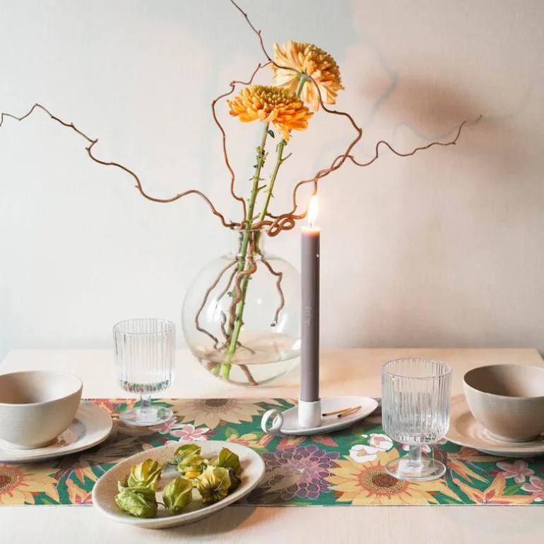 Frida Kahlo Flores bordløper fra Ekelund er en hyllest til farge, mønster og kreativitet. Med et motiv inspirert av Frida Kahlos ikoniske stil, gir denne løperen borddekkingen et unikt og uttrykksfullt preg. Den måler 35×120 cm og kan brukes både på langs og på tvers, direkte på bordflaten eller over en duk for ekstra effekt.