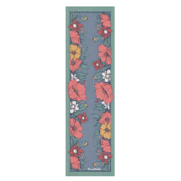 Frida Kahlo Vida løper fra Ekelund er en dekorativ og kunstnerisk tekstil som gir borddekkingen et fargerikt og personlig uttrykk. Med inspirasjon hentet fra Frida Kahlos unike stil, tilfører løperen både karakter og varme til rommet. Den måler 35×120 cm og kan brukes på tvers eller langs bordet, enten alene eller over en duk for mer dybde.