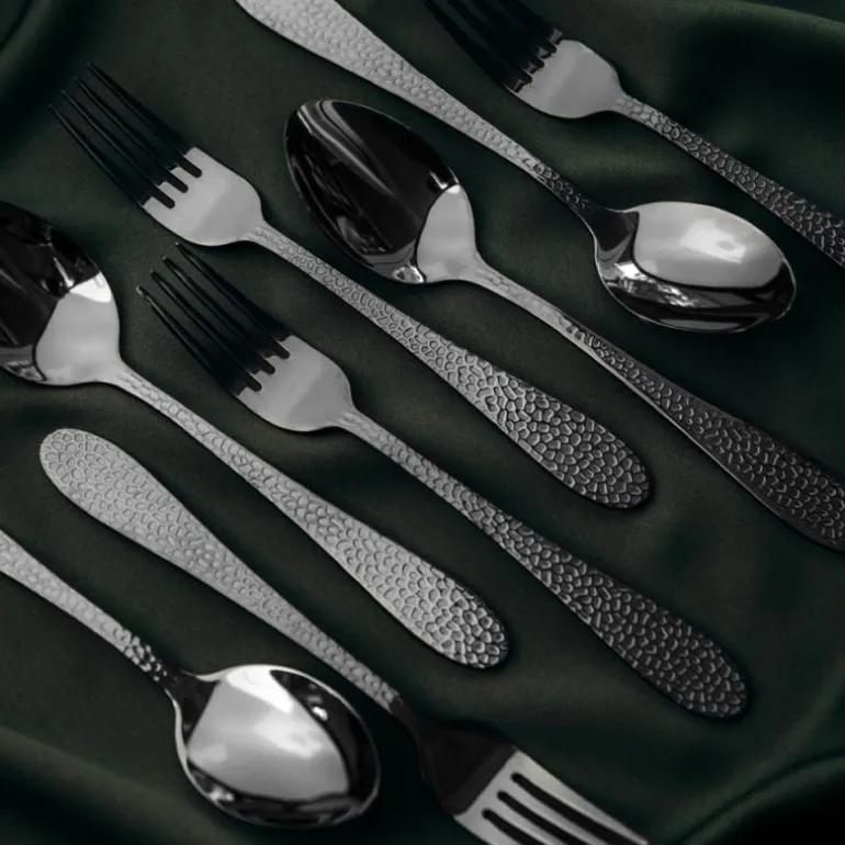Bestikket har ergonomiske håndtak for godt grep og kan vaskes i oppvaskmaskin. Et slitesterkt og visuelt unikt tilskudd til borddekkingen – perfekt for deg som verdsetter detaljer og kvalitet.