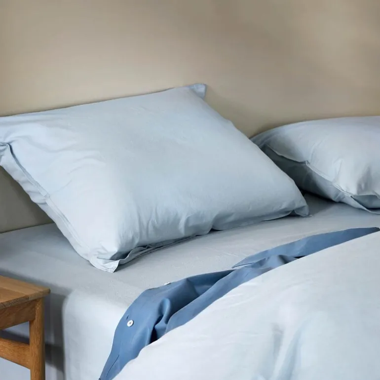 Frøya putetrekk 50×70 cm lys blå fra Høie, kombinerer mykhet og slitestyrke i et tidløst design. Laget av ekstra fin bomull og steinvasket for en lett og luftig tekstur, får putetrekket en naturlig krøll som gir sengen et uanstrengt, men sofistikert preg.
