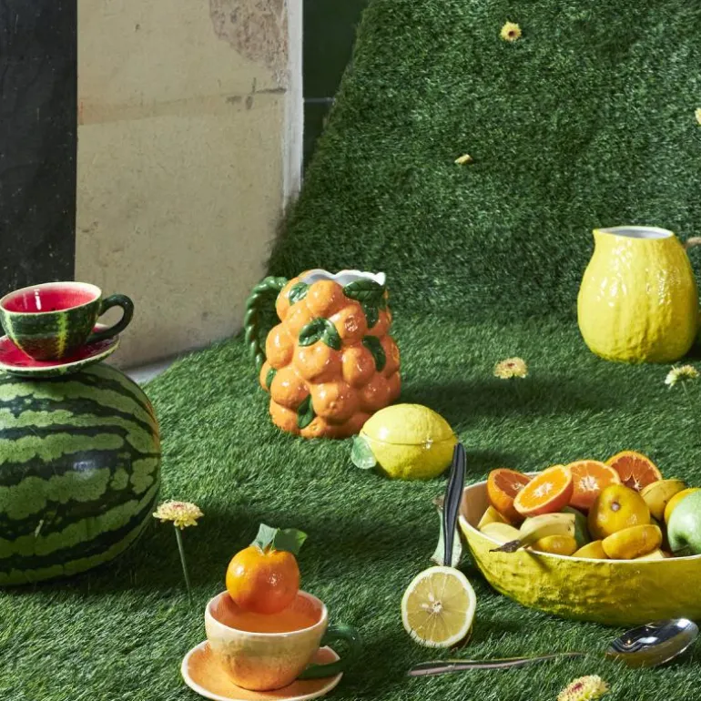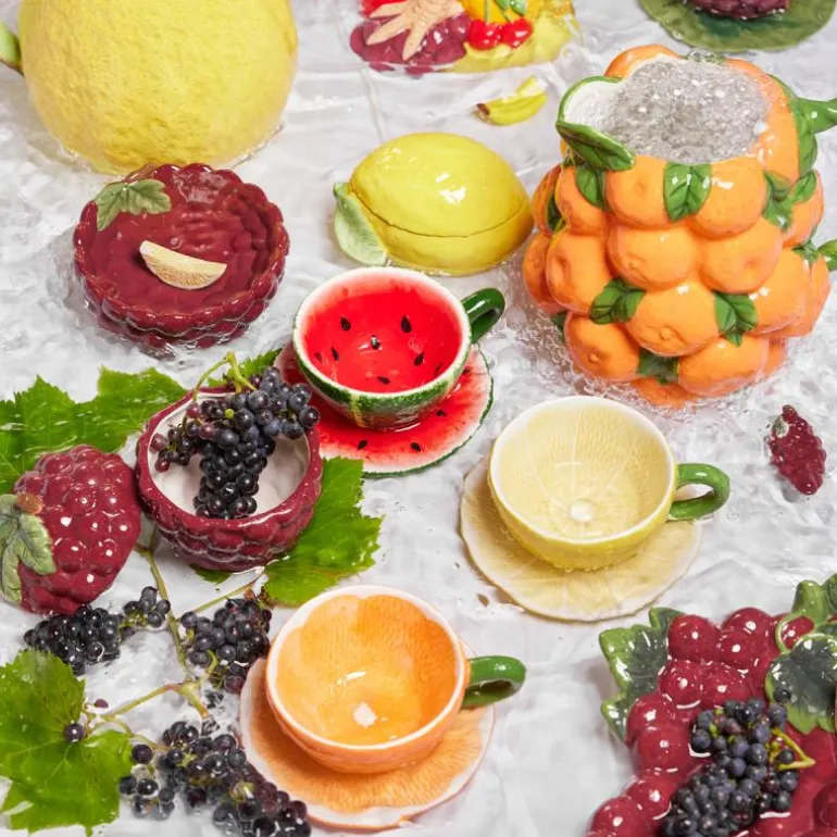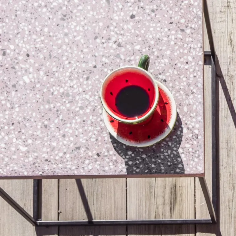 Cup Watermelon er en te- eller kaffekopp med tilhørende tallerken formet etter navnet. En del av Byons fruktkompott og tilhører Fruity-serien. Leveres i fin gaveeske med kopp og fat i ett. Tåler vask i oppvaskmaskin. Design Byon Studio.