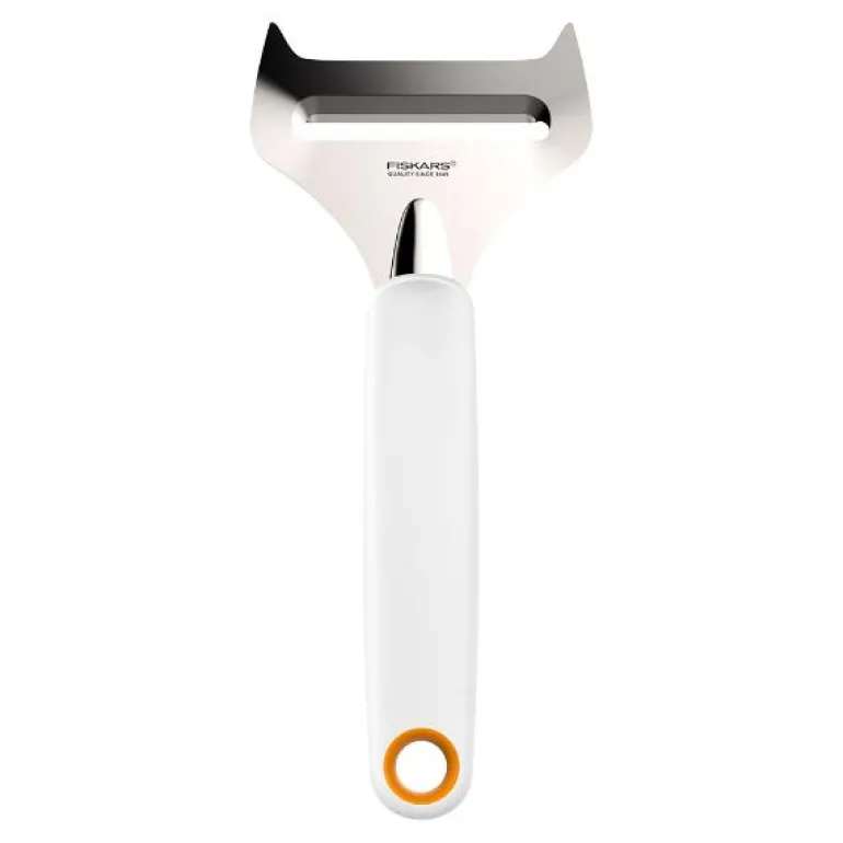 Ergonomisk ostehøvel perfekt til mykere oster. Det korte bladet i rustfrittstål forhindrer at osten setter seg fast i selve bladet.