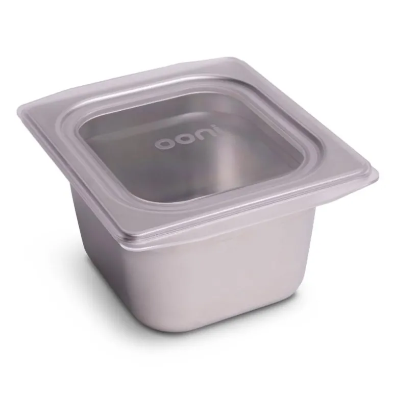 Beholderne har gjennomsiktige lokk som gjør dem enkle å stable og oppbevare i kjøleskapet etter bruk. Rammen er laget i pulverlakkert stål og har et rustfritt stål-lokk som passer perfekt på Ooni Modular Table. Hele enheten kan enkelt tas av for rengjøring og lagring. En praktisk løsning for deg som vil ha bedre flyt i matlagingen utendørs.