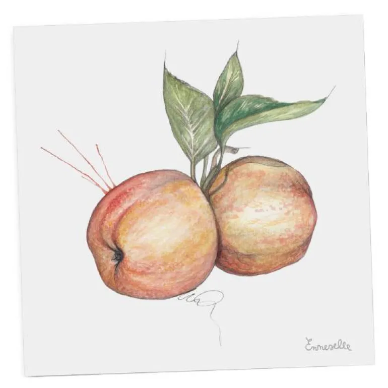 Fin gavelapp fra Emmeselle med motiv av hardangerepler. Motivet er etter tegninger fra kunstner og illustratør Mona Stenseth Erlandesn.