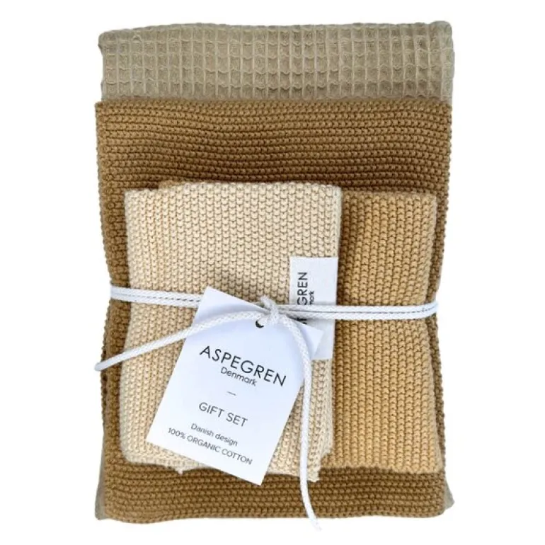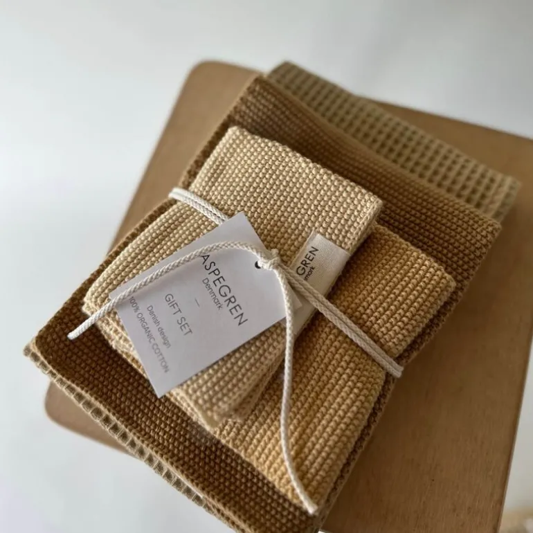 Gavesett med 1 kjøkkenhåndkle og 2 oppvaskkluter i fargen melon fra Aspegren gir en perfekt balanse mellom stil og funksjon. Designet med inspirasjon fra nordisk enkelhet, er dette settet ideelt som en gjennomtenkt gave eller en liten oppgradering til ditt eget kjøkken. Den myke bomullen og de harmoniske fargene gir en følelse av luksus i hverdagen. Passer like godt i lyse og klassiske kjøkken som i mer fargerike omgivelser.