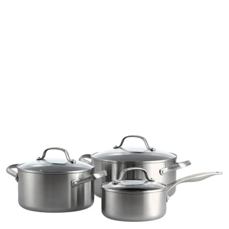 Dette settet med tre kasseroller fra Geneva-serien fra Greenpan er et ideelt valg for all matlaging og tilberedning i kjøkkenet ditt.