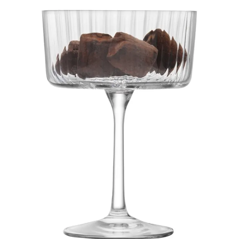Dette settet med fire glass fra LSA Internationals Gio Line-serie er designet for både champagne og cocktails. Hvert glass rommer 23 cl og har linjestrukturerte vegger og en glatt innside, noe som gir et stramt, men elegant uttrykk. Den moderne formen og det lave, avslappede benet gir glassene en lett og tidløs karakter.