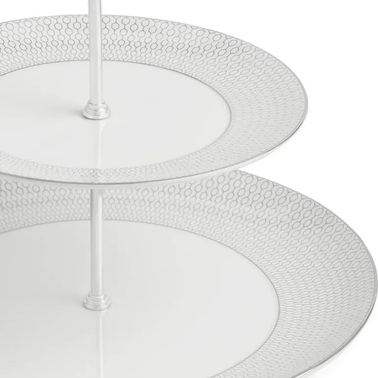 Gio Platinum etasjefat 2 lag fra Wedgewood. Gjør din ettermiddagste enda mer stilfull med Gio Platinum to-etasjes kakefat. Den har et moderne og delikat metallmønster på begge etasjene, som er karakteristisk for Gio-samlingen.