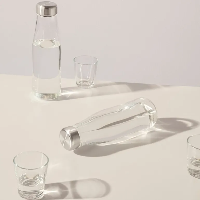 Gjør serveringen både stilfull og praktisk med glasskaraffelen fra Eva Solo. Denne elegante karaffelen i borosilikatglass er perfekt for vann, iste eller juice, og den dryppfrie hellekragen sørger for sølefri servering.