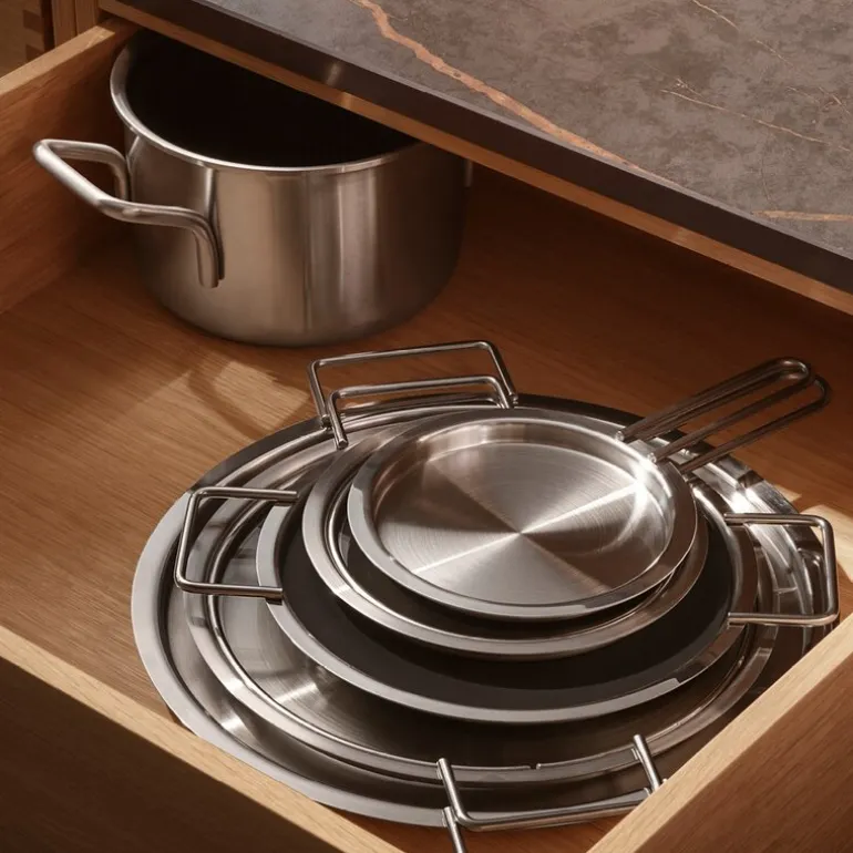 Lokket er laget av 90 % resirkulert stål, noe som gir langvarig kvalitet. Det kan både stables og henges opp, og er kompatibelt med Eva Trios faste størrelser, slik at det kan brukes med kasseroller og panner på tvers av serien. Lokket tåler både ovn og oppvaskmaskin, og kan kjøpes separat etter behov.