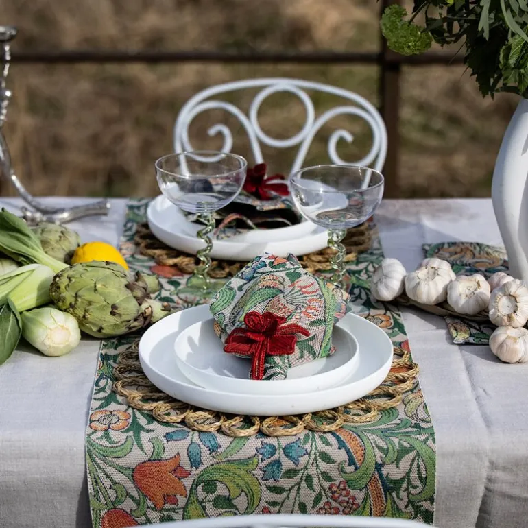 Golden Lily løper fra Ekelund, i samarbeid med William Morris, gir borddekkingen et elegant og tidløst uttrykk. Det gylne mønsteret er inspirert av Morris’ karakteristiske stil og bringer inn et klassisk preg til både hverdagsmåltider og mer høytidelige anledninger. Med målene 35×120 cm passer løperen fint både på langs og tvers av bordet.